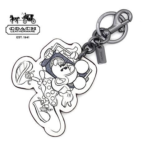 Coach アウトレット コーチ F Bkchk ディズニー コラボ ミニーマウス レザー キーリング キーホルダー バッグチャーム チョーク